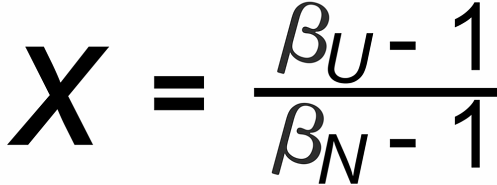 Let r1 be the "unknown" and r2 the "known" ratio (i.e. the ratio whose "true" ratio RT2 is known), then, resolving the above "laws" for RT1 allows the computation of the "true" ratio of r1.